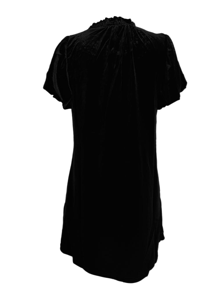 - Puff Sleeve Velvet Holiday Mini Dress - Keyhole Neck - Short sleeve - Neck Smocking