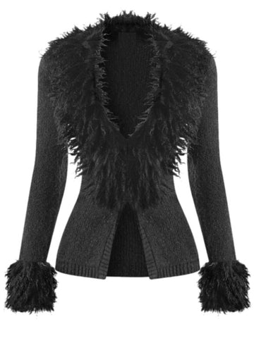 -LONG SLEEVE -FRONT SPLIT -HOOK & EYE CLOSURE -FAUX FUR TRIM -SOFT & STRETCHY
